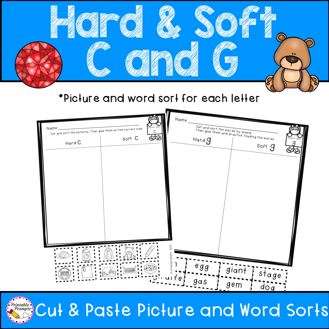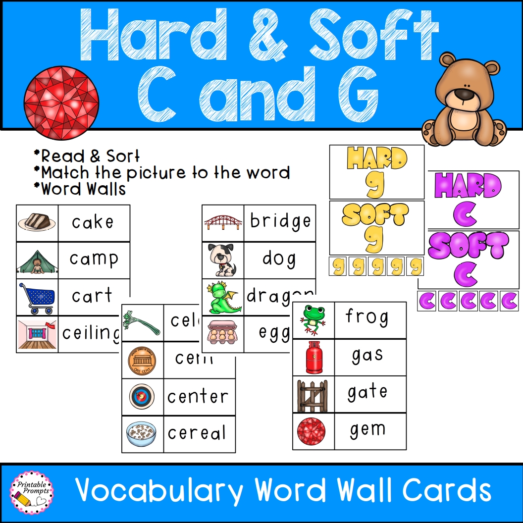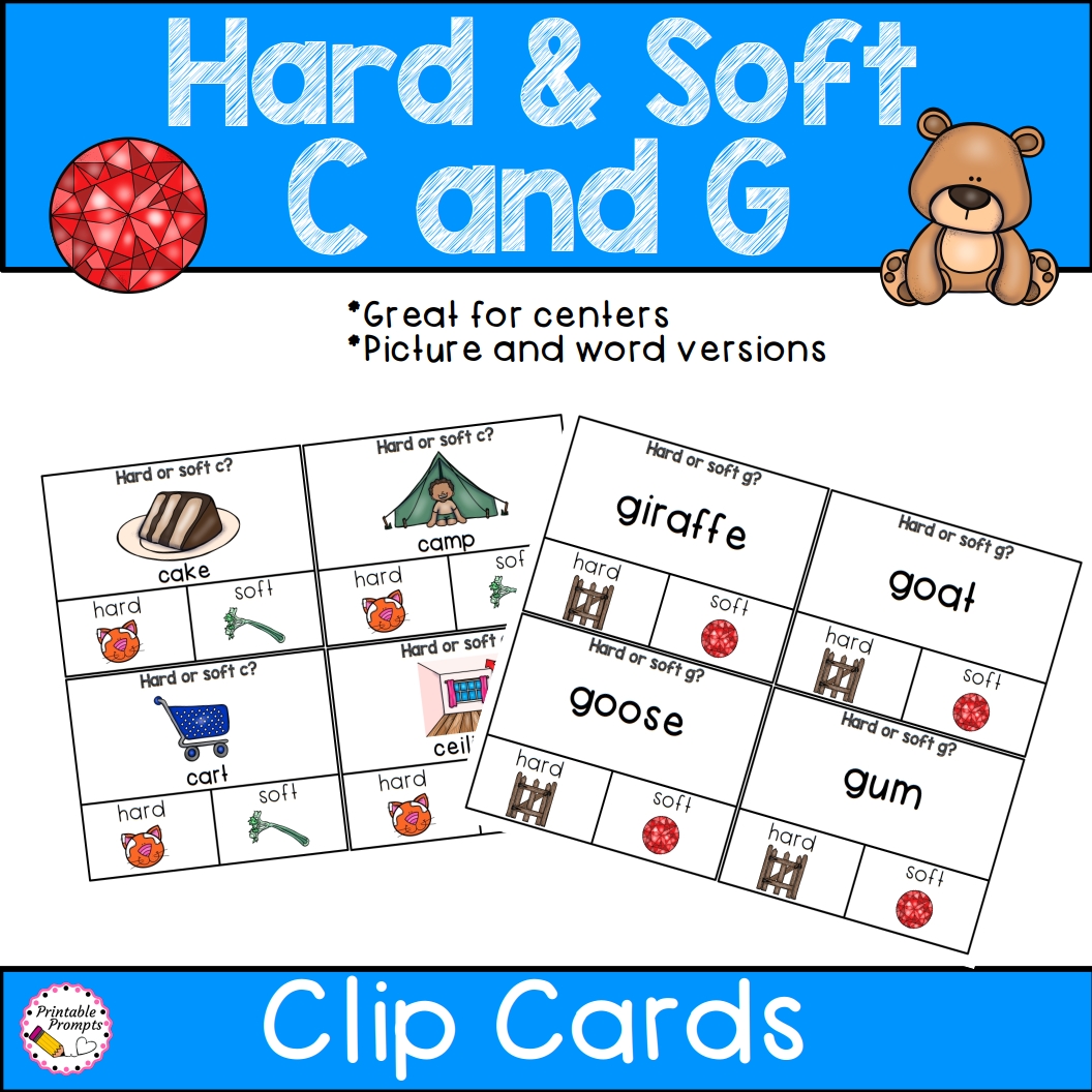 Hard and soft c and g practice is made fun and engaging with a poem to learn the rules, vocabulary word wall cards, sorting activities, independent practice, and even hard and soft c and g clip card center! Great for phonics lessons and word work centers.