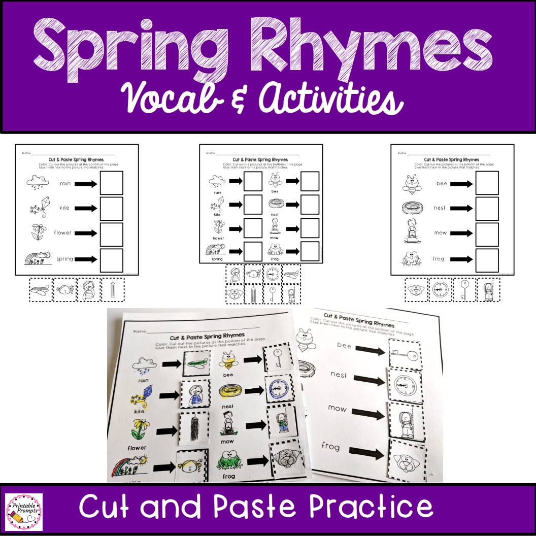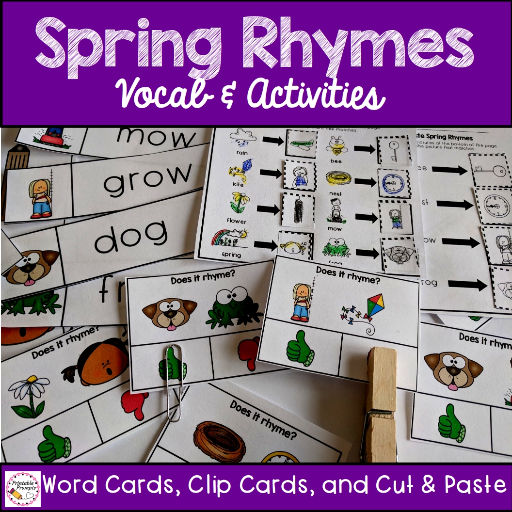 Kindergartners, First graders, and even some PreK students are ready to practice identifying rhyming words during literacy time. These printable spring themed activities help students to identify words that rhyme through vocabulary cards, cut and paste activities, and clip cards. This resource is great for literacy centers, morning tubs, or whole group cut and paste practice.