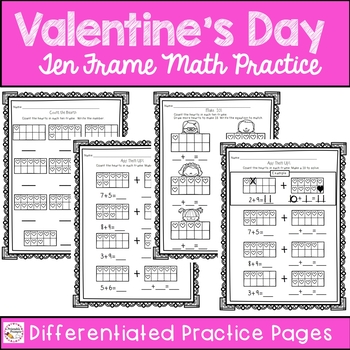 Your kindergarten and first graders will LOVE this differentiated Valentin'es Day ten frame practice resource this February. They can practice counting to 10, making a 10, or adding to make a 10 using ten frames! The Solve and write the room, practice pages, and playing cards make this a great math center resource for February and Valentine's Day.