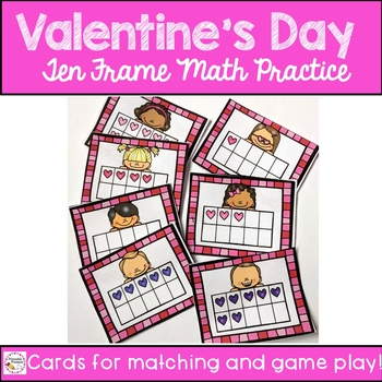 Valentines Day math Practice pages (4 total) for : Counting using 10 frame, make a 10, add to make a 10. Valentines Day Write the Room 10 frame playing cards (2 multilevel games- Valentines Match partner game, and Valentines Day Match).