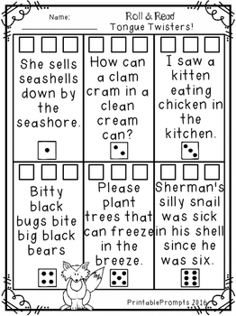Students roll and read tongue twisters. Great for building fluency, practicing reading strategies, and having FU