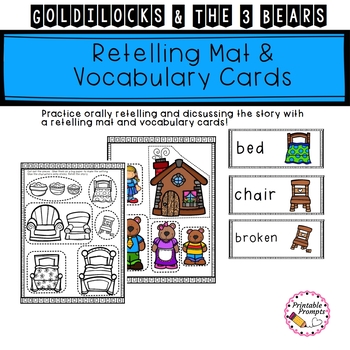 Vocabulary cards- Common words and characters from the story are included on vocabulary cards. Great to support the enclosed writing activities. (Goldilocks, 3 Bears, Porridge, chair etc).