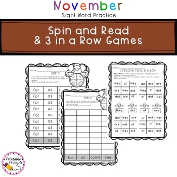 Color and themed November Sight Word Practice activities will keep your students engaged as they practice and master the following sight words: