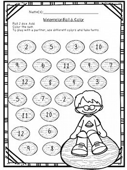 * roll and color activity (addition to 12)