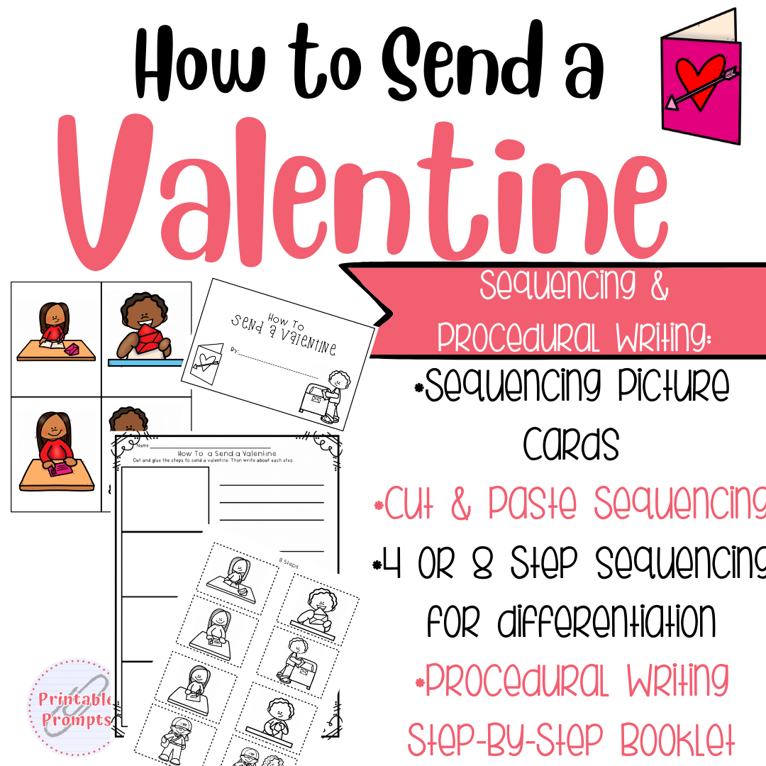 As you get ready to celebrate Valentine's Day, keep students engaged in writing with this procedural writing and sequencing resource! Relevant vocabulary cards are great to support discussion, writing, or even to add to a word wall. Then choose from a number of differentiated writing templates for your students to write about how to send a valentine in the mail. Extension responses help students to apply and connect to their learning.