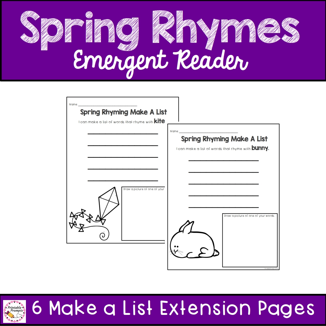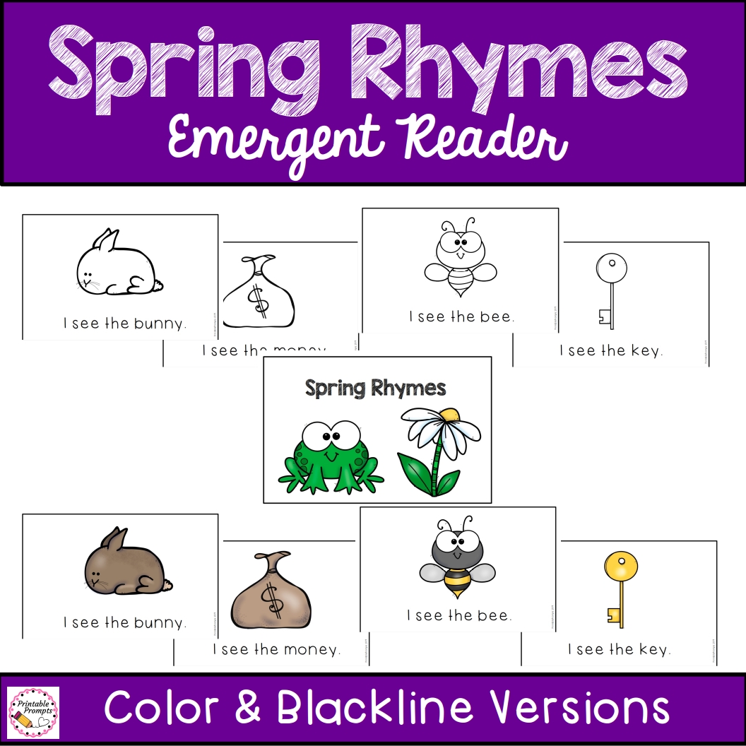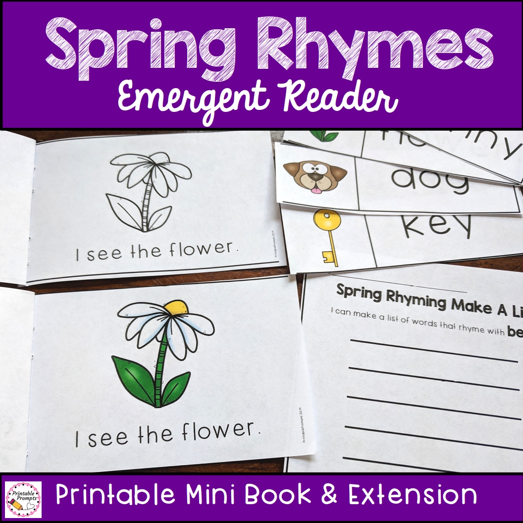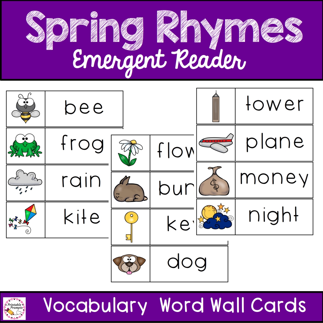 Practice reading and identifying rhyming words with your kindergarten or first graders this spring during guided reading, morning work, or even whole group lessons. This printable mini book, supporting vocabulary word wall cards, and extension make a list activities provide opportunities for students to practice reading rhyming words!