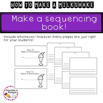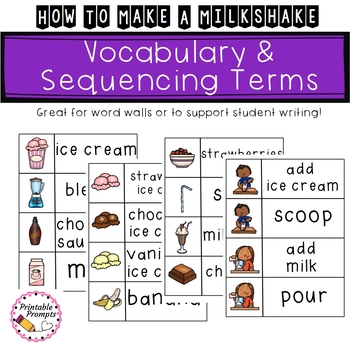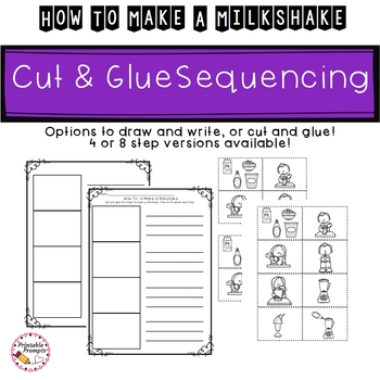 Help your students write about something they love- milkshakes! Picture supports help guide students as they sequence the steps to make a milkshake before and as they write. You can cut and paste, draw and write, and even select from a 4 or 8 step sequence and writing choice. Vocabulary words help students to write and also talk about the steps to make a milkshake. This is a great writing activity or literacy center for the end of the year, beginning of the year, or even a summer writing activity.