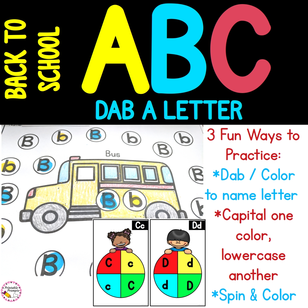 Practice identifying capital and lowercase letters this back to school season in your preschool or kindergarten classroom. Students can dab or color the dots to show the difference between uppercase and lowercase letters or spin and mark using the included spinners. This is a great independent work packet or literacy center.