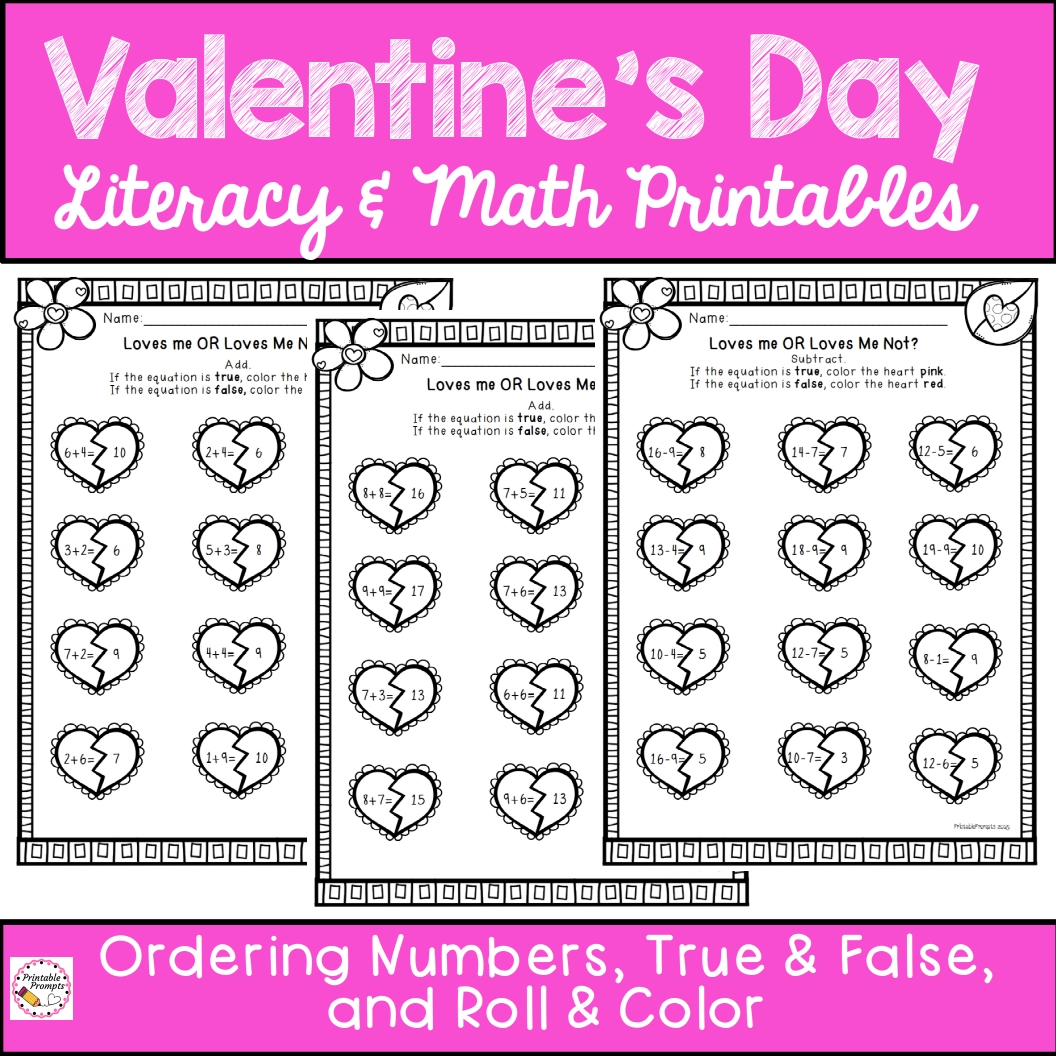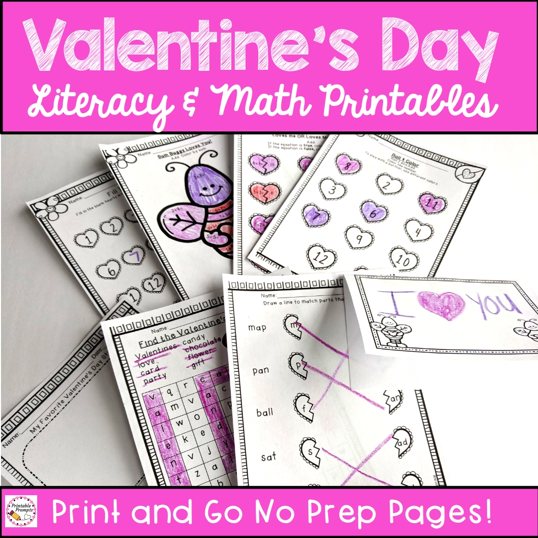 No prep printables are perfect for first graders on busy days like Valentine's Day. Addition and subtraction math activities, along with short vowel phonics practice, and word searches make for great morning work, center activities, or early finisher activities this February.