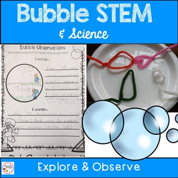 Engage your kindergarten, first grade, or second grade students with bubble science fun. They'll explore hands on with bubbles and then make observations, ask and explore wondering questions, and even complete a STEM project to build a bubble wand.