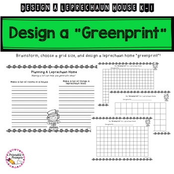 Your kindergarten and first graders will feel extra lucky this St. Patrick's Day as they design the greenprint for a leprechaun house. Plan, draw the outline of rooms,and choose from one of three grid sizes to draw the outline of each room. Count the number of "squares" or "boxes" that makes up each room! This is like a basic counting application of area for young learners! With fun literacy extensions, your students will keep learning with this St. Patrick's Day Math project!