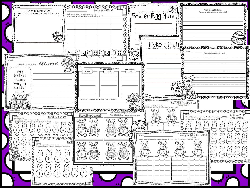 Looking for some easy, no prep printable activities this spring for Easter time? These Easter themed practice page worksheets and activities are great to engage students in writing, story response, abc order, counting and adding and more!