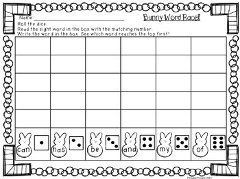 *Roll & Race sight word activity- Includes one with words, and one with blanks to print and personalize