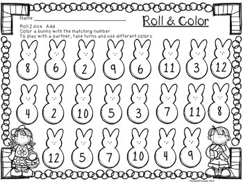 *Roll and Color individual/partner game -2 versions. Roll one die, and roll and add 2 dice.