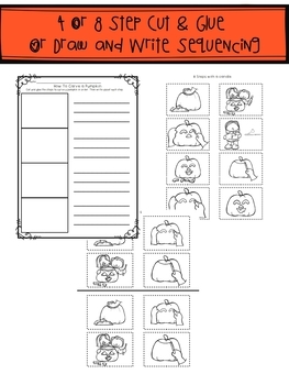 *How to Carve a Pumpkin or How To Make A Jack-o-lantern write and draw OR cut and glue to sequence (this is offered in 4 or 8 steps).