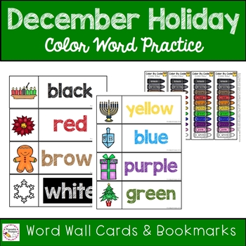 This concept emergent reader is a great way to practice reading color words as well as December Holiday themed vocabulary. Kwanzaa, Christmas, and Hanukkah themed color and blackline printable mini book, color by code practice, and color and label practice make for a great set of review activities.