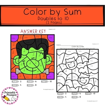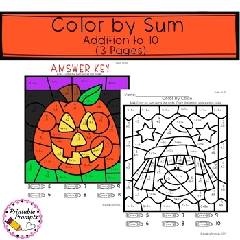 3 Halloween color by number- sums to 10