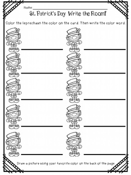 Leprechaun Write The Room- This freebie is a great way to practice reading and writing color words for St. Patrick's Day with young learners. The signs are great for the entire month of march to reinforce colors and color words.