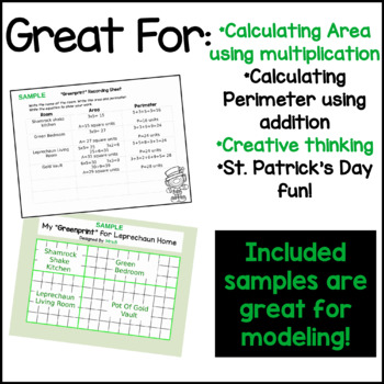 Practice area and perimeter by designing a leprechaun house with a "greenprint" for St.Patrick's Day. Students use this creative and seasonally relevant assignment to practice area and perimeter as well as literacy connections! With a modeled sample, lesson materials, and a scoring rubric, this math activity is all you'll need!