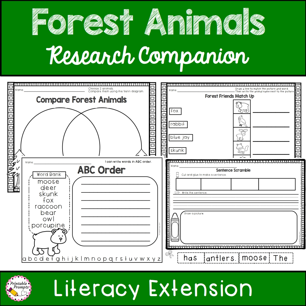 Learn all about woodland animals and forest habitat with your kindergarten, first grade, and second graders. Graphic organizers, report writing pages, vocabulary cards, and real life photos will complement your study of forest animals! Extension letter, word and sentence scrambles are great themed addition to your literacy centers! Use these companion materials along with any book or video in your classroom about forest or woodland animals!