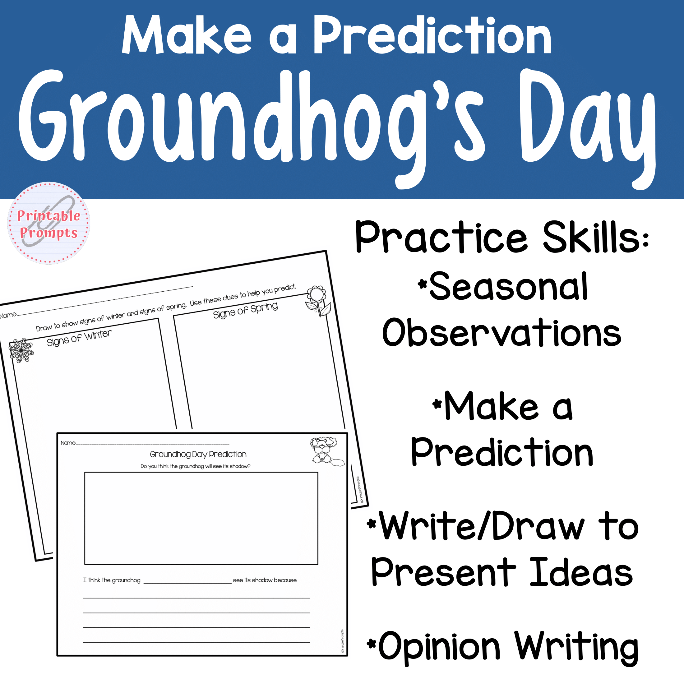 This resource includes both the prompts "Will the Groundhog see its shadow" and "Do you think we will have more winter weather or early spring weather"