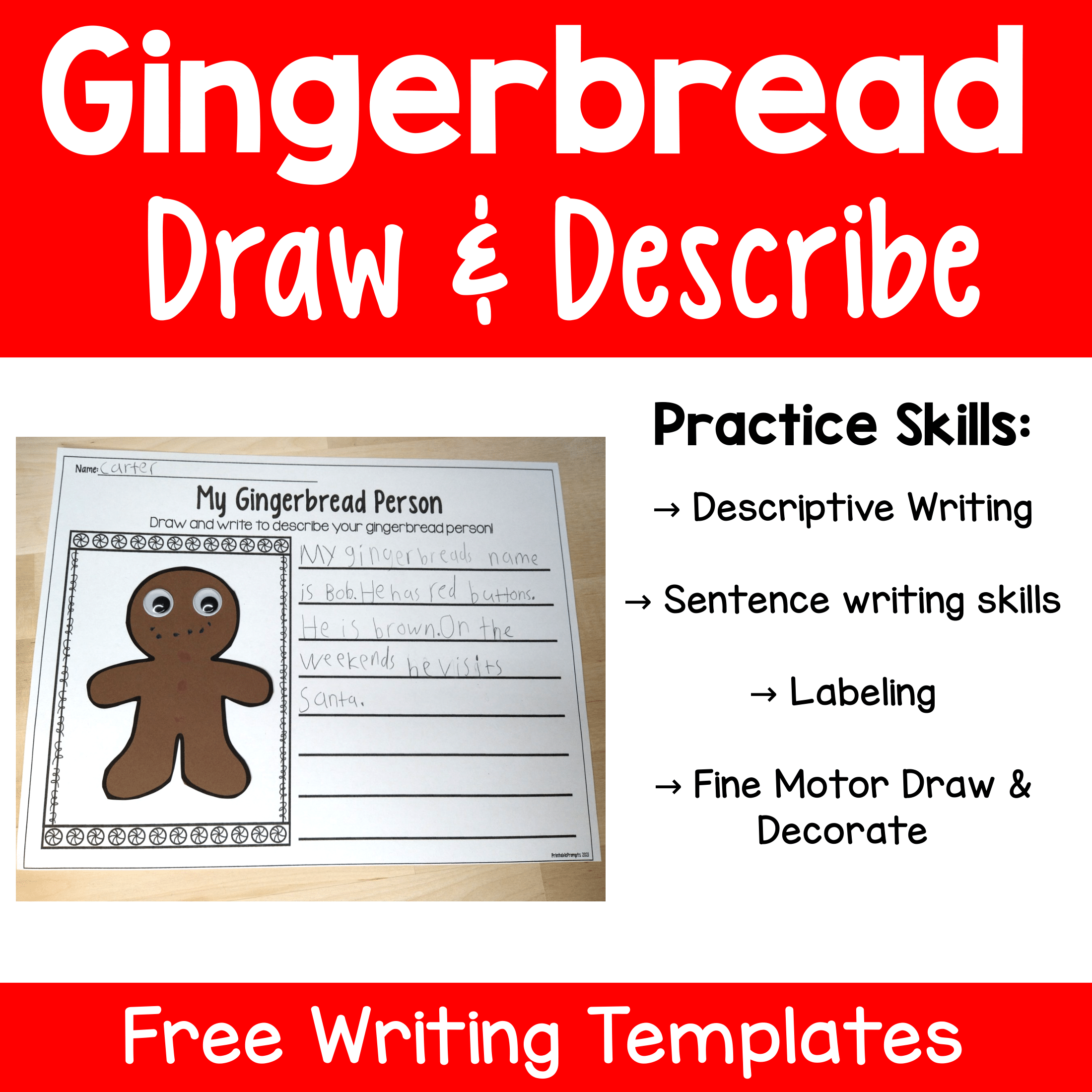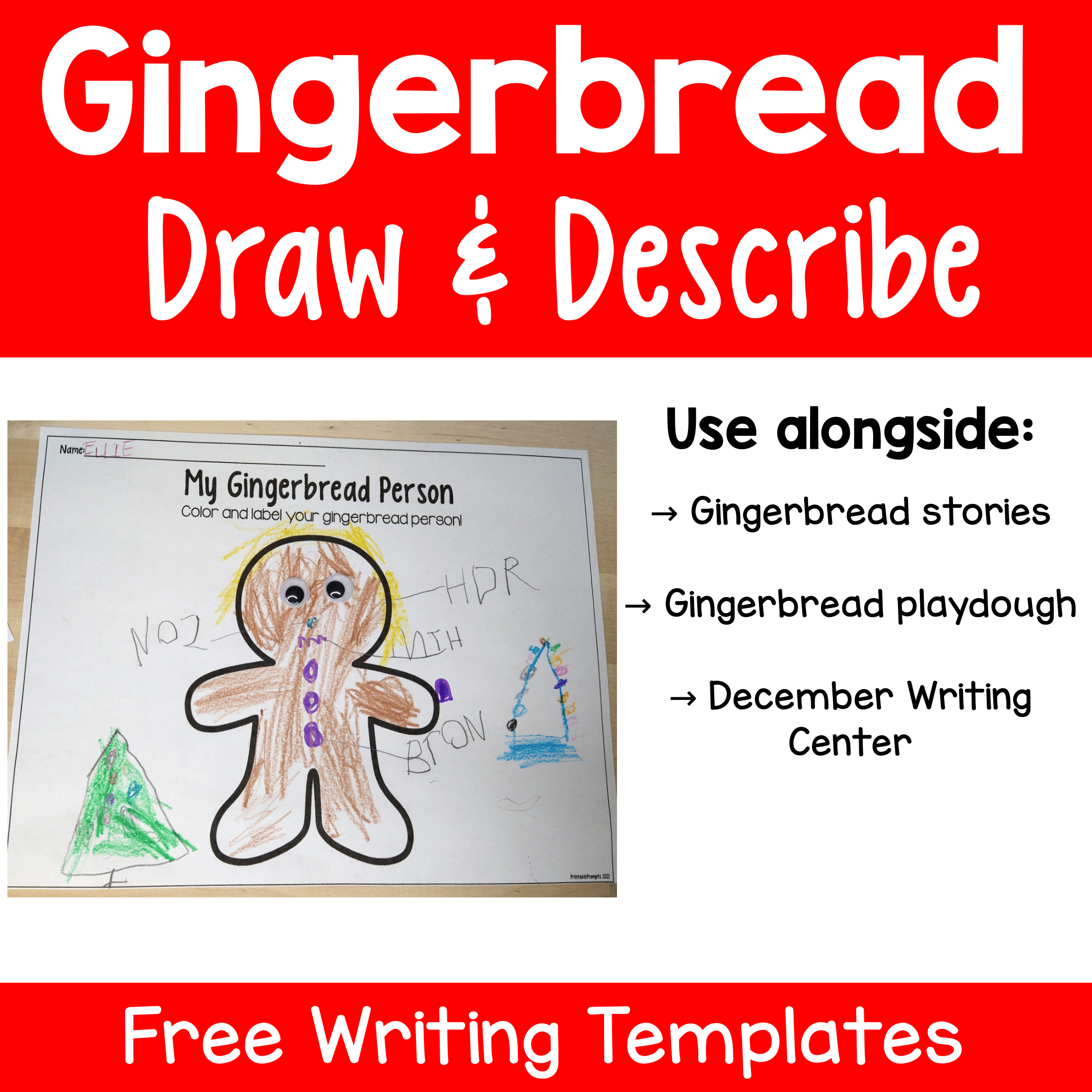 Draw and describe a gingerbread person and work on whatever writing skills are just right for your students. Pair as a response to a gingerbread story where students either represent the character, or create their own.