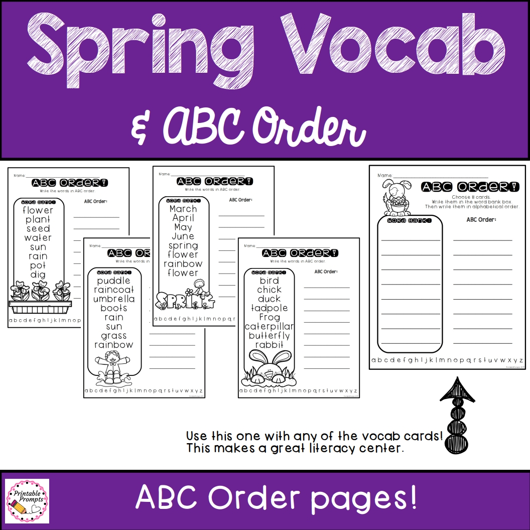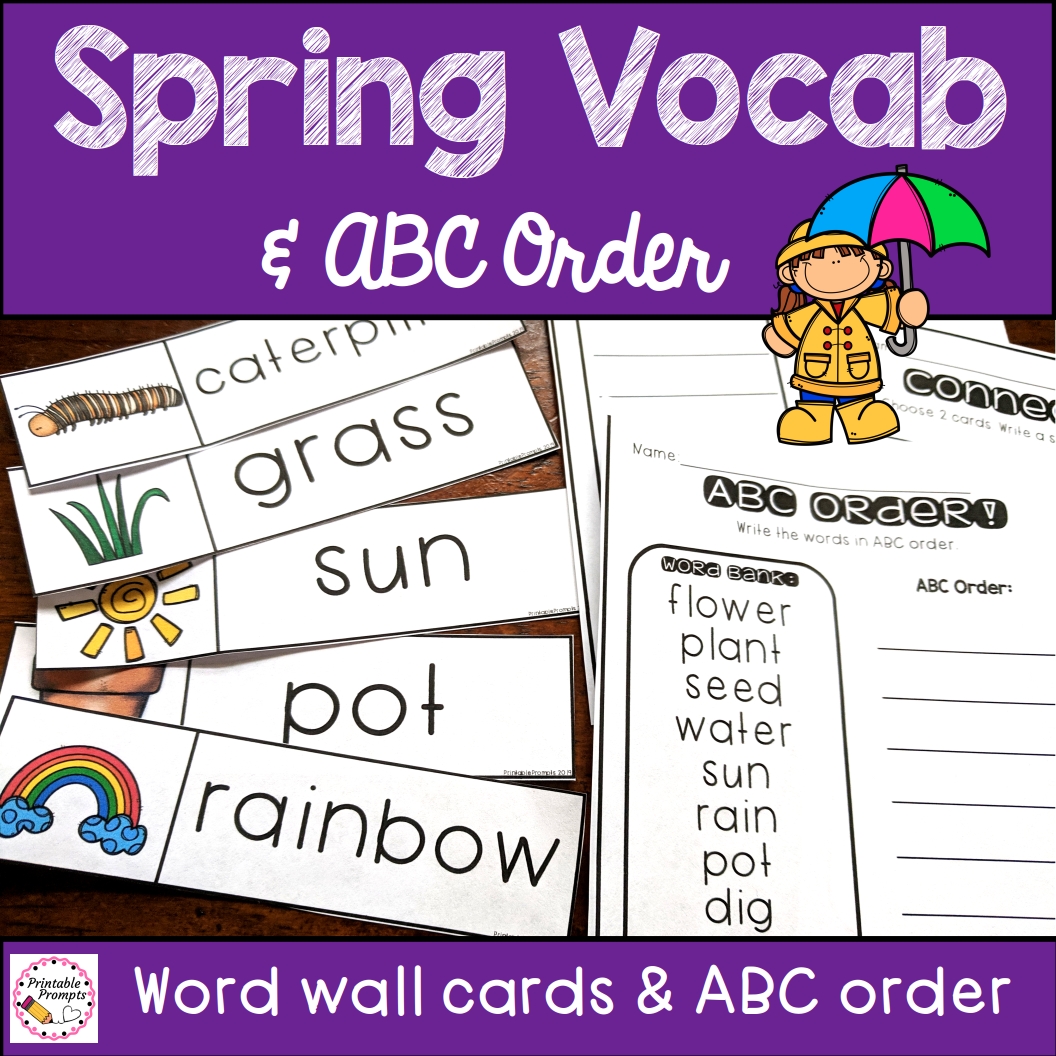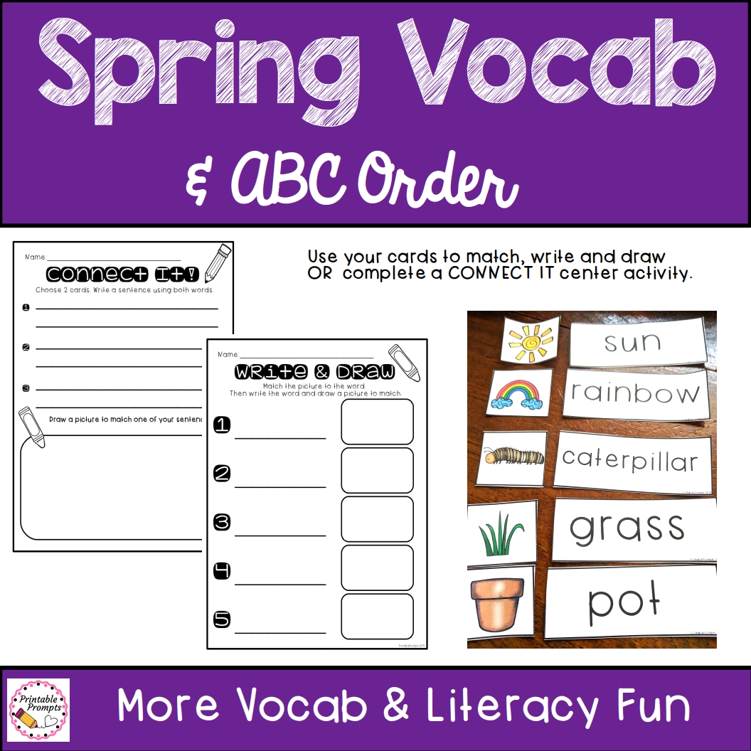 Use spring themed vocabulary and word wall cards to practice reading spring words, matching the words to the picture, alphabetic order, as well as a Connect It, and Write and Draw activity. Great for literacy centers and to support writing and speaking activities all spring long.