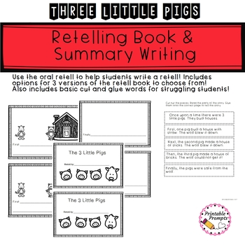 *written retelling book (3 choices)- Now offered with cut and glue story parts for differentiation