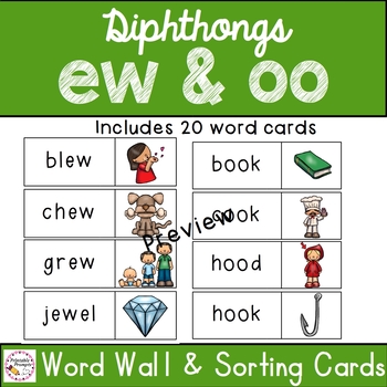 The focus is on the ew/oo with the same sound, however there is a poster, chant, word cards and pictures, and some practice pages for oo (book) as a courtesy so this resource is even more versatile for your!