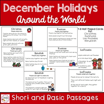 Learn about the December Holidays, Las Posadas, Hanukkah, Christmas, and Kwanzaa with your first or second grader using these informational passages (or any other book or video about the holidays), graphic organizers, and writing pages, all designed for you to build your own December holiday research packet with a cover and generic response pages as well.