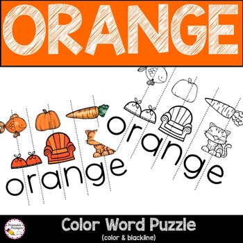 Build color recognition for orange by reading a printable mini book, color with crayons or markers, go on an orange hunt, and completing a cut and paste word puzzle. This is a great Preschool or kindergarten color practice resource. This is a great way to build upon early literacy skills as well!