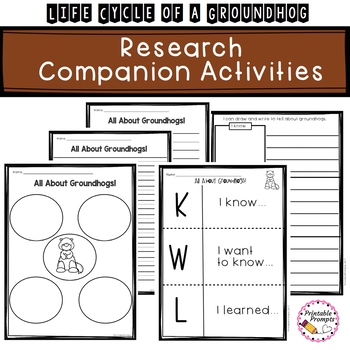 Includes: Web writing pages (2 line sizes) KWL chart (2 versions) Vocablary cards Life cycle cut and paste (2 versions) Life cycle booklet (cut and paste or draw) Life Cycle wheel (2 versions) Label a groundhog (2 versions) *Groundhog photos