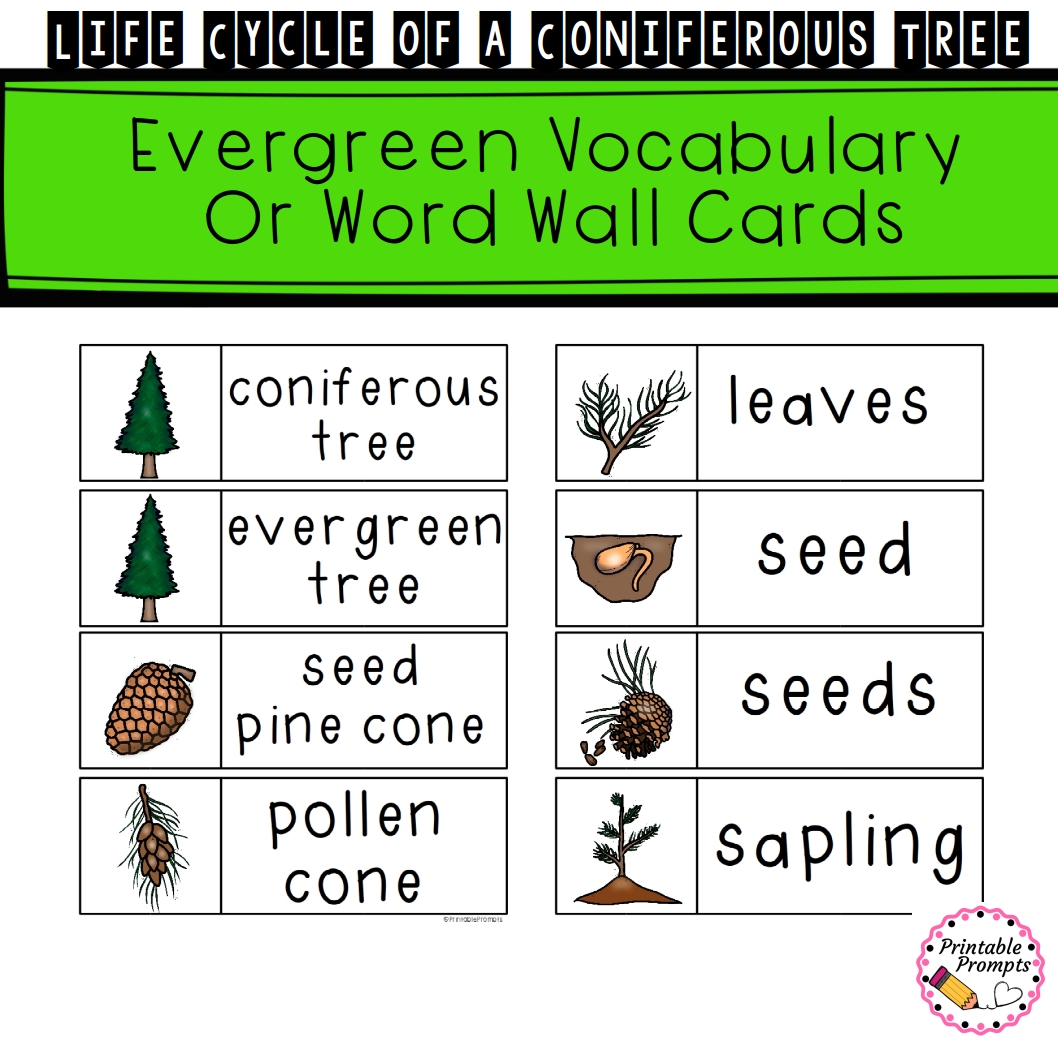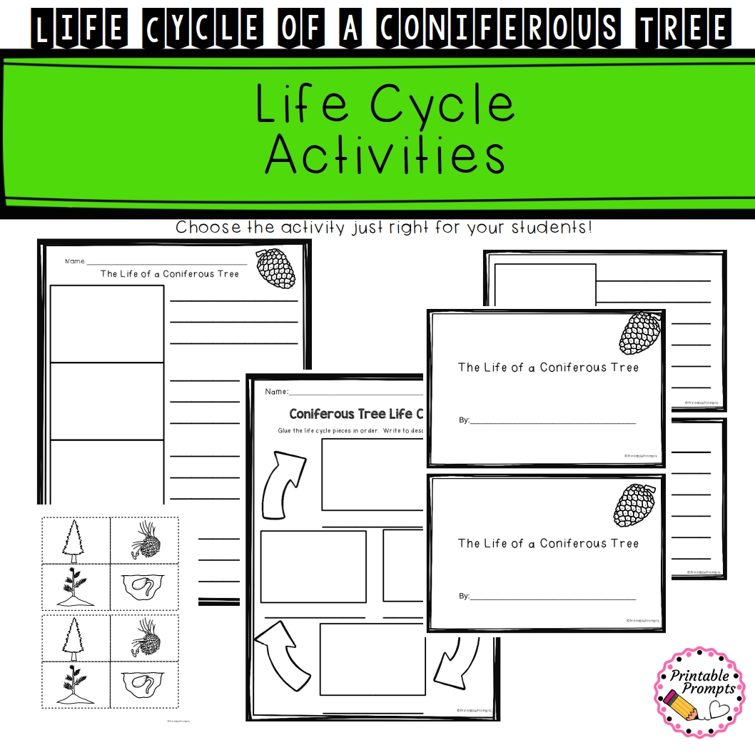 These activities will help your students learn all about how a coniferous tree grows! With a life cycle wheel and cut and glue life cycle activities your students will talk and write about the life cycle of evergreen trees. Vocabulary cards and extension research companion resources will add more fun and learning to your study!