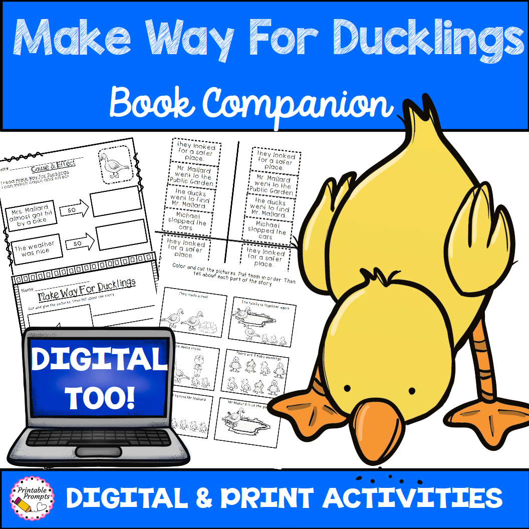 This story companion includes written response, cut and paste sequencing, and cause and effect activities are easy to differentiate to use with your students and will help build comprehension as you read Make Way for Ducklings. Great for follow up to a read aloud, literacy center, listening center, or substitute plan!