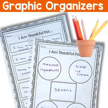 Forget the same old dull I am thankful writing prompt this November. This Thanksgiving writing activity puts a fun twist on the traditional writing response as students write about being thankful for the small things in life, like pencils and chairs! Generate and organize ideas using a graphic organizer and choose seasonal writing paper as you teach this fun Thanksgiving writing lesson.