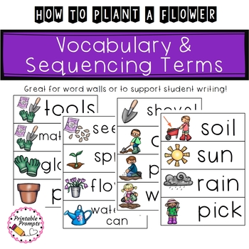 16 vocabulary/ gardening word cards (great for word wall)
