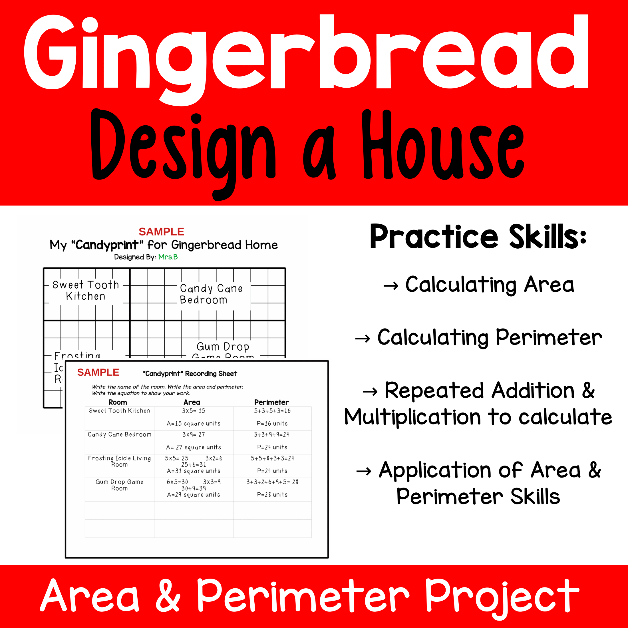 If your students love gingerbread, keep them engaged and excited this December with a fun math project! Practice designing the floor plan for a gingerbread house in this area and perimeter activity and practice using repeated addition or multiplication to solve. It even makes a great bulletin board display! The time saving print and go nature of the project, along with included samples, differentiated parts, and extension activities make this a great addition to your holiday activities.