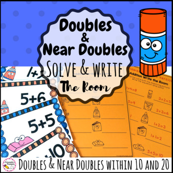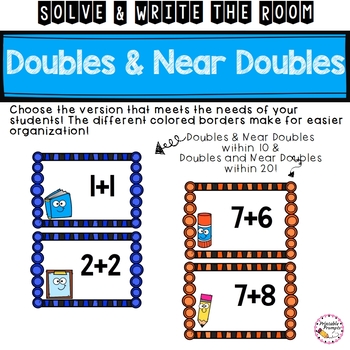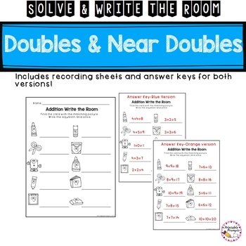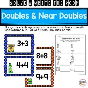 Engage your first and second grade students in math fact practice as they go on a math task card hunt around the room to find all the cards and solve the equations. They'll solve doubles and near double facts within 10 in one version and doubles and near doubles within 20 in a second version. Two versions makes differentiation a breeze! Include these in a math center, as a warm up, or even in morning tubs if you'd rather use them that way!