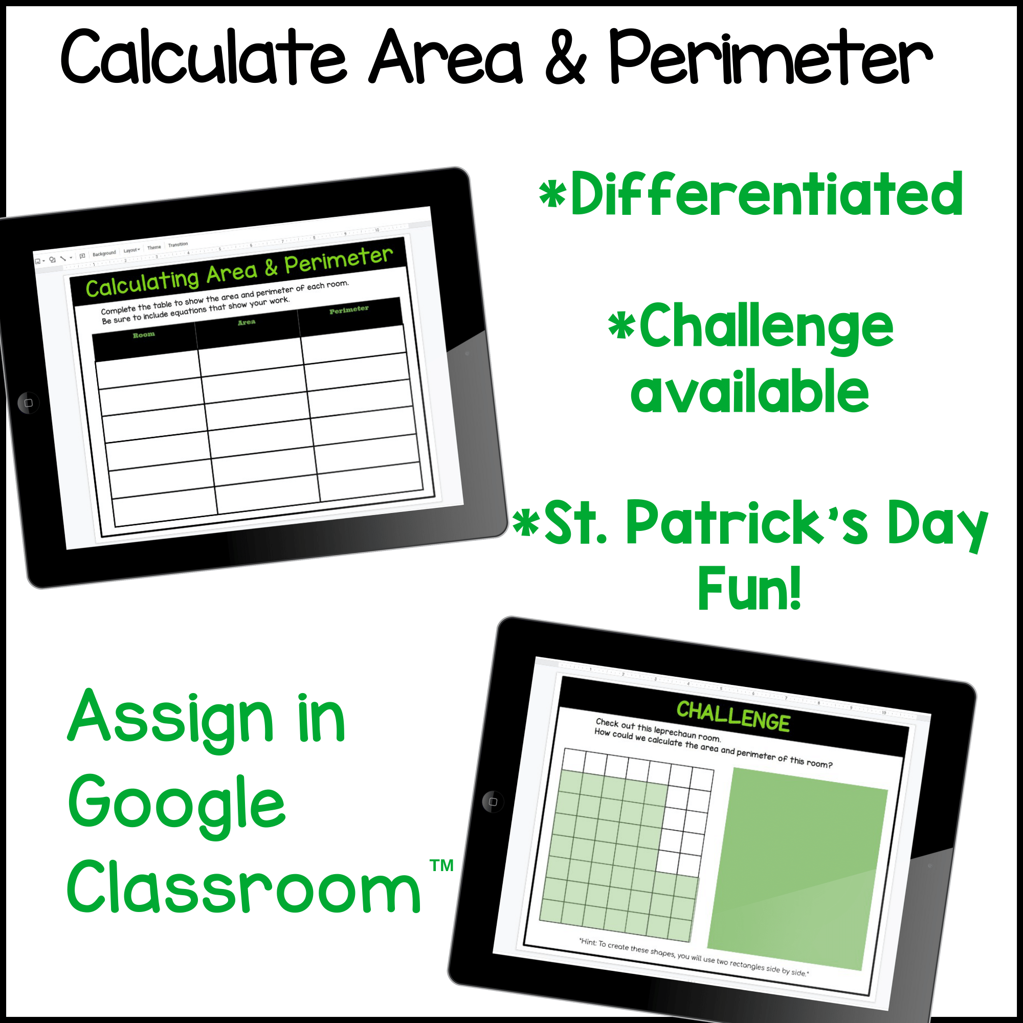 Get digital this March as your students design a leprechaun house in Google Slides and practice calculating area and perimeter. Whether distance learning or providing synchronous math lessons, your students will love this St. Patrick's Day themed practice and the fun extensions that come with it. It's no prep and ready to go!
