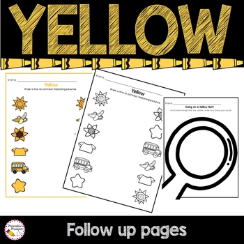 Build color recognition for yellow by reading a printable mini book, color with crayons or markers, go on a yellow hunt, and completing a cut and paste word puzzle. This is a great Preschool or kindergarten color practice resource. This is a great way to build upon early literacy skills as well!