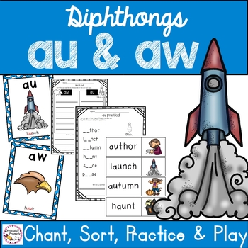 Chant, practice, sort, and play as you practice the Diphthongs aw and au. Vocabulary cards, posters, and word sort activities provide your students with practice reading and writing words with the au and aw dipthongs!
