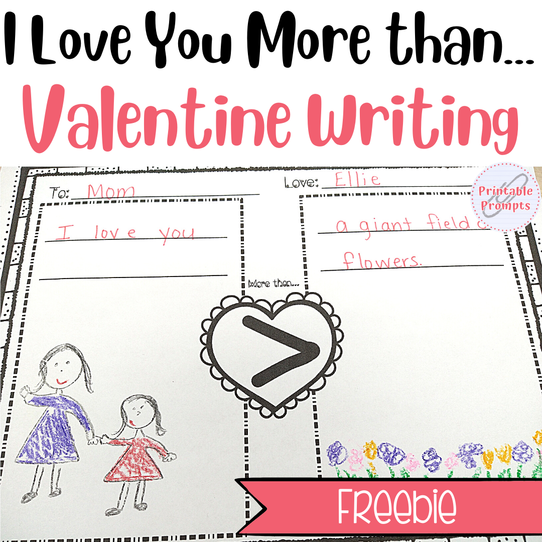 Combine Valentine's Day writing with comparing quantities symbols with this "I love you more than" writing activity. There are two writing templates, one using the > sign and one using the words. Students can use this to write a sweet message to a friend or family member.
