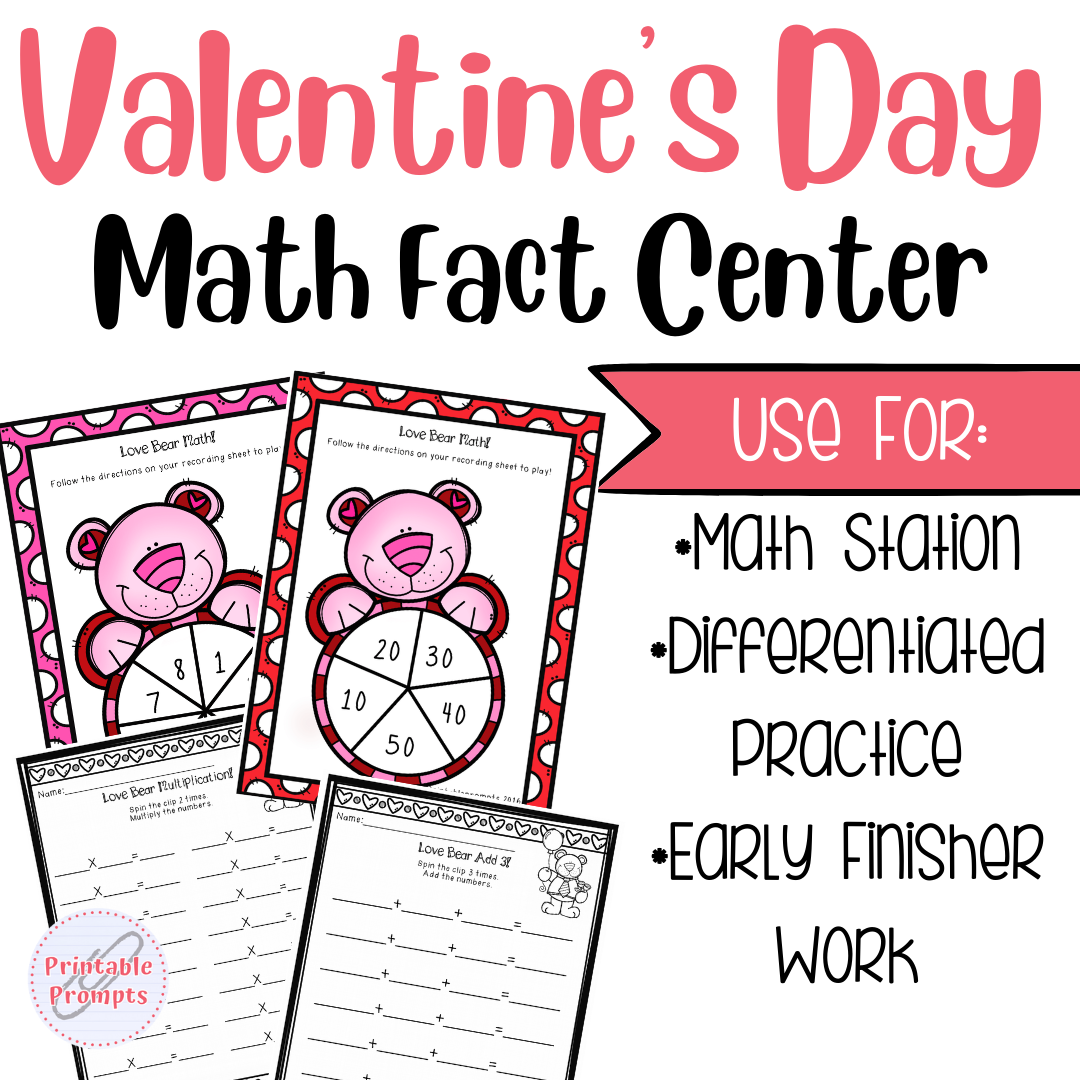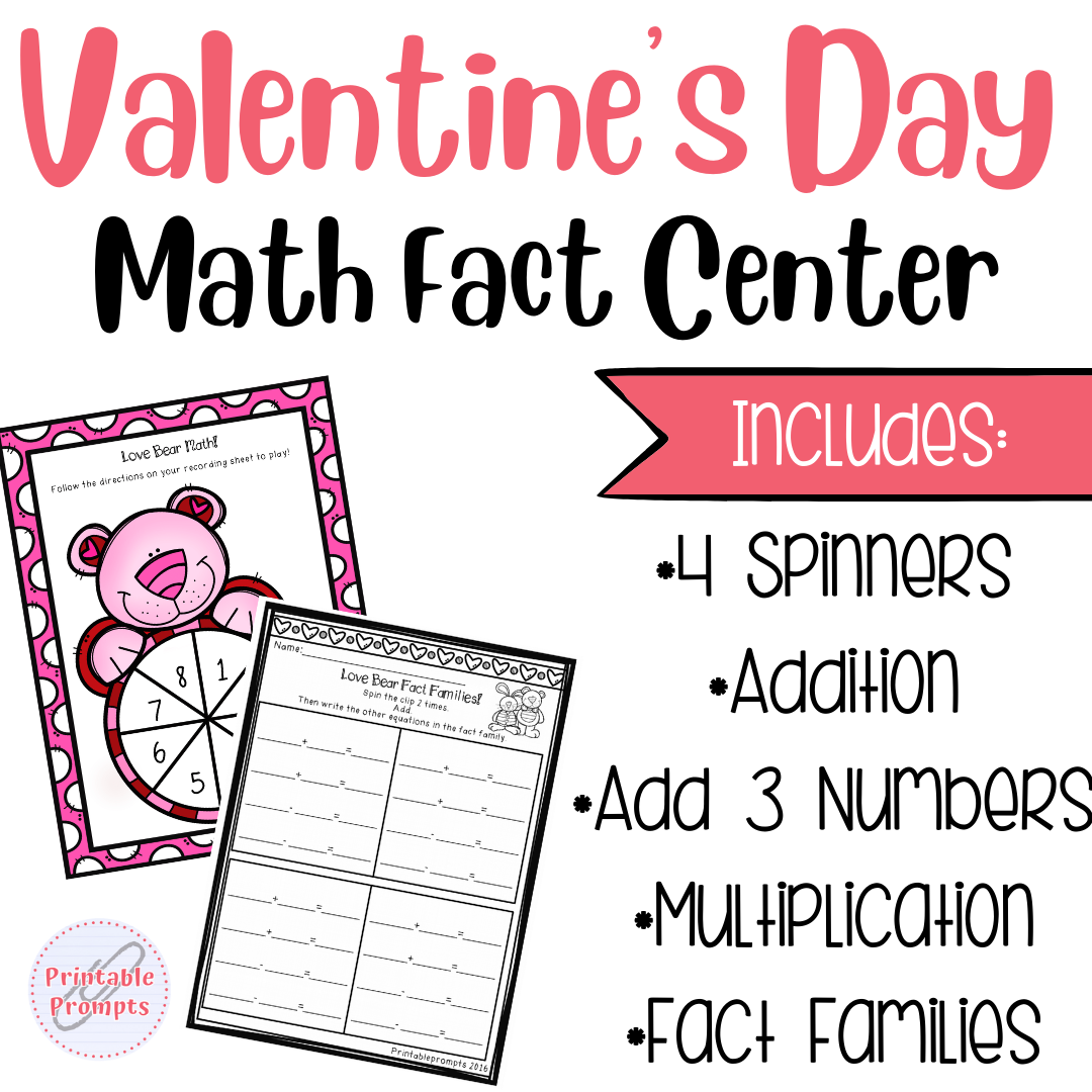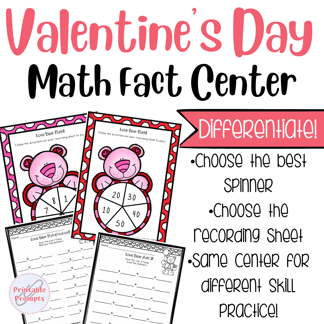 This February build math fact fluency with this spin and solve Valentine's Day activity. Differentiated spinners and recording sheets help your students to practice addition, multiplication, and fact families using the same math center. It's easy to print and then assign different groups just the spinner and recording sheet that's just right for them!