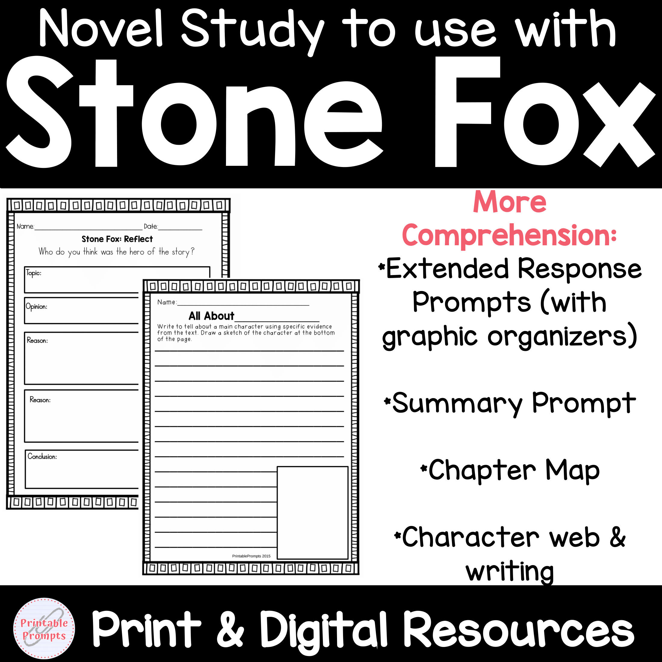 Build comprehension, discussion, and critical thinking with your students in this Stone Fox Novel Study. Now including distance learning digital chapter questions and character response to support long term school closures and distance learning. Book Companion materials including chapter comprehension questions , vocabulary connections, and close reading will help students delve into this book study!