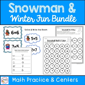 Practice adding within 10 and 20 with this snowman themed teaching resource. 2 versions of solve and write the room will keep students moving as they practice addition to 10 and 20. Additional printable partner games (5 versions) will help students with number identification and solving additional facts. Bundle up with bonus snowman place value and counting printables (three versions of one activity for differentiation).
