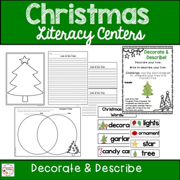 Keep students engaged the week before winter holiday break with these 5 Christmas themed literacy centers, perfect for kindergarten and first graders. Practice building sentences, writing to describe a Christmas tree, write about a favorite story, and more with this center resource! Each center also includes a student instruction sheet with a sample so students can work more independently during center time.