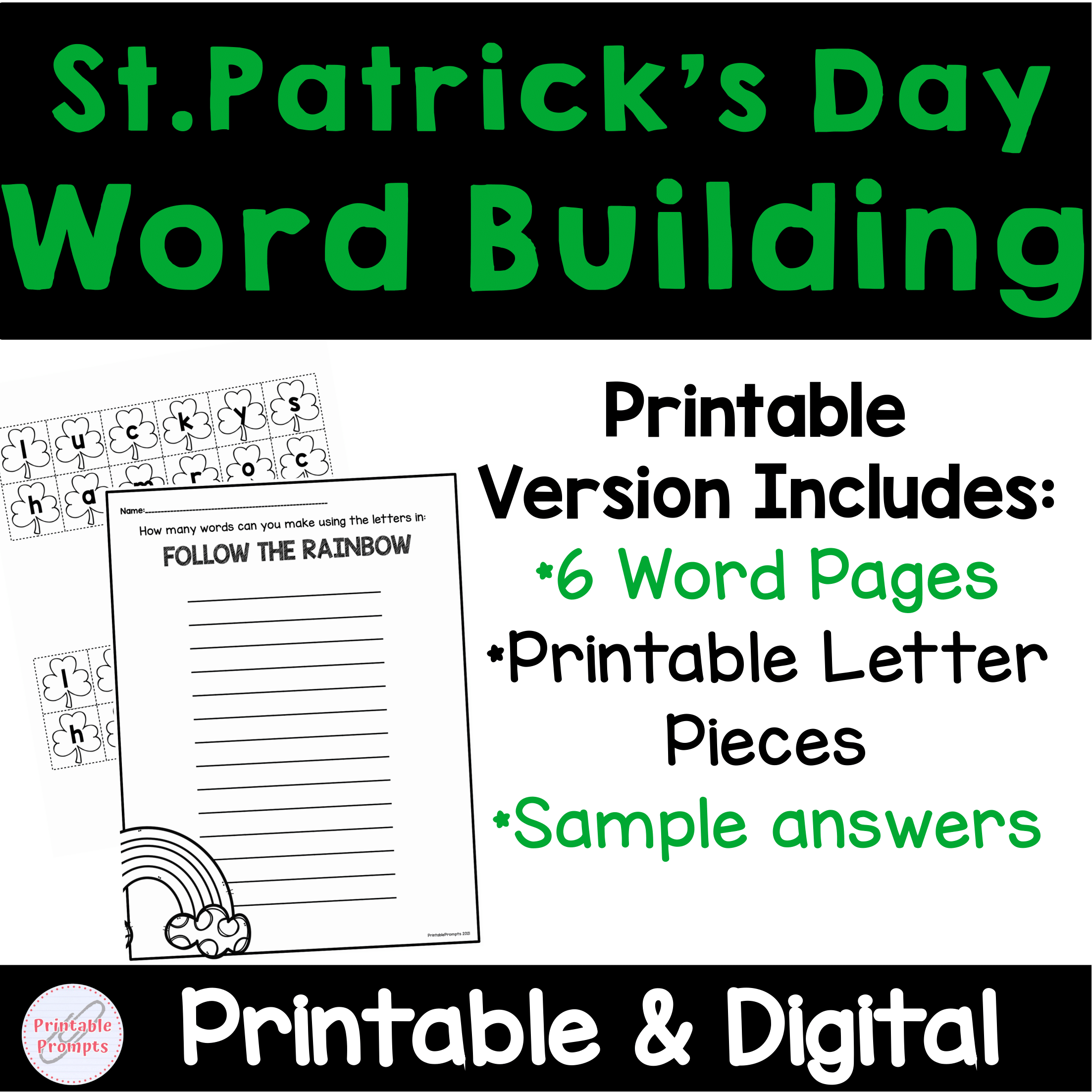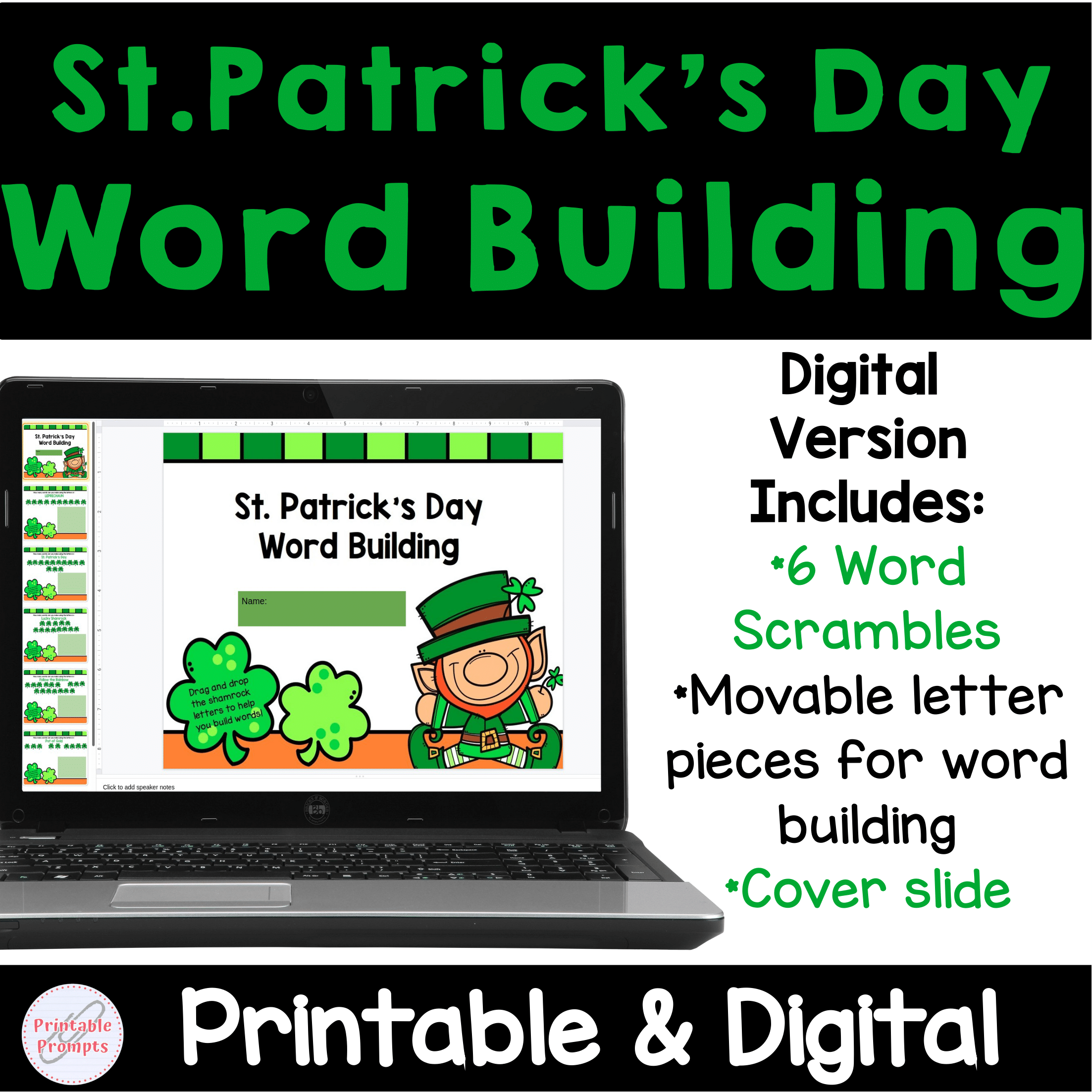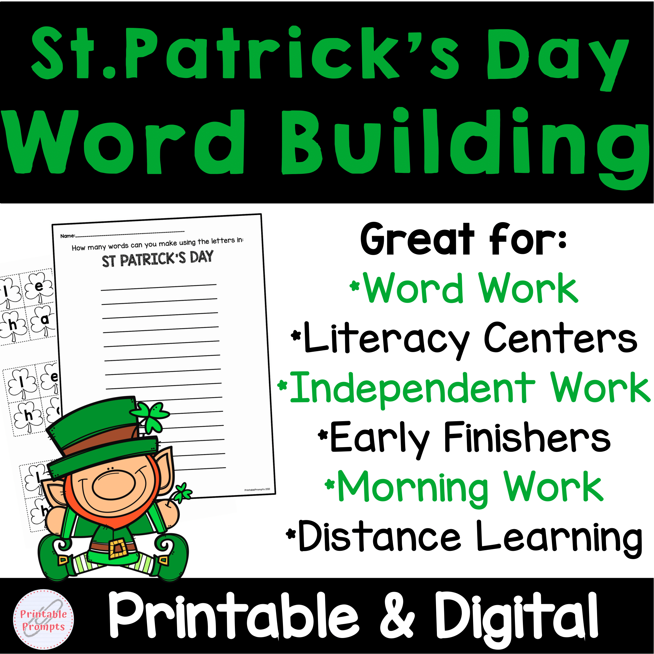 Students will be looking for more than treasure this March, they'll be searching and scrambling around letters to do this word building activity. They will take 6 different St. Patrick's Day words and practice making words from the letters. Printable and Digital (Google Slides TM) formats make this resource ready to use for centers, literacy stations, or independent work no matter where your students are!