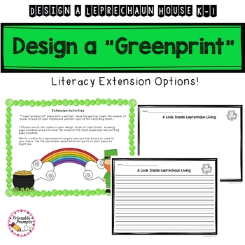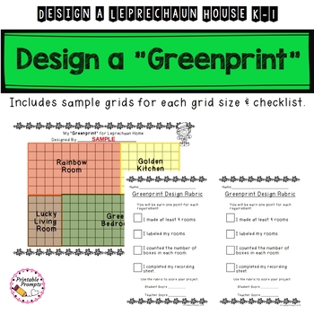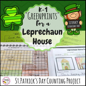 Your kindergarten and first graders will feel extra lucky this St. Patrick's Day as they design the greenprint for a leprechaun house. Plan, draw the outline of rooms,and choose from one of three grid sizes to draw the outline of each room. Count the number of "squares" or "boxes" that makes up each room! This is like a basic counting application of area for young learners! With fun literacy extensions, your students will keep learning with this St. Patrick's Day Math project!