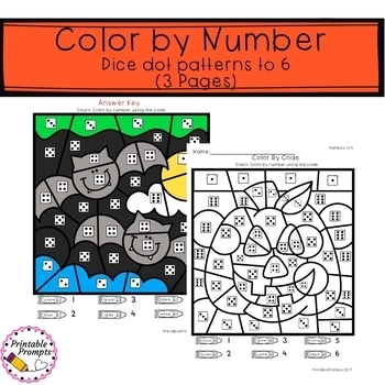 Practice counting or subitizing dice dot patterns to 6 and numbers to 10 with these Halloween coloring pages! Keep your students engaged and learning with bats, Jack O Lantern, trick or treat bag pictures and more as they color by number using a code!