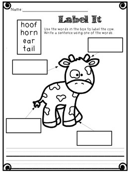 *Label It- Basic labeling- hoof, horn, ear, tail ( (Informational)